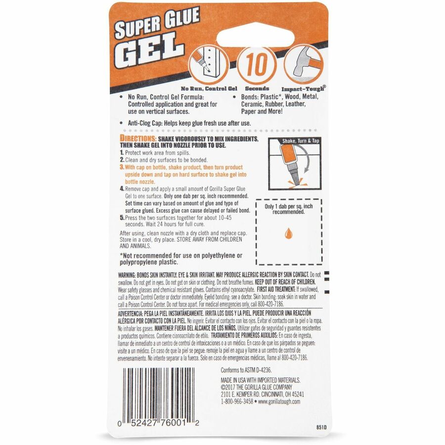 Gorilla Super Glue Gel - 0.53 oz - Clear - 1 Each
