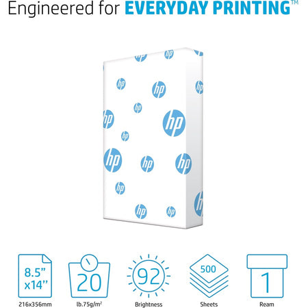 HP Papers Office20 Paper - White - 92 Brightness - Legal - 8 1/2" x 14" - 20 lb Basis Weight - Smear Resistant, Quick Drying - White - 500 / Ream