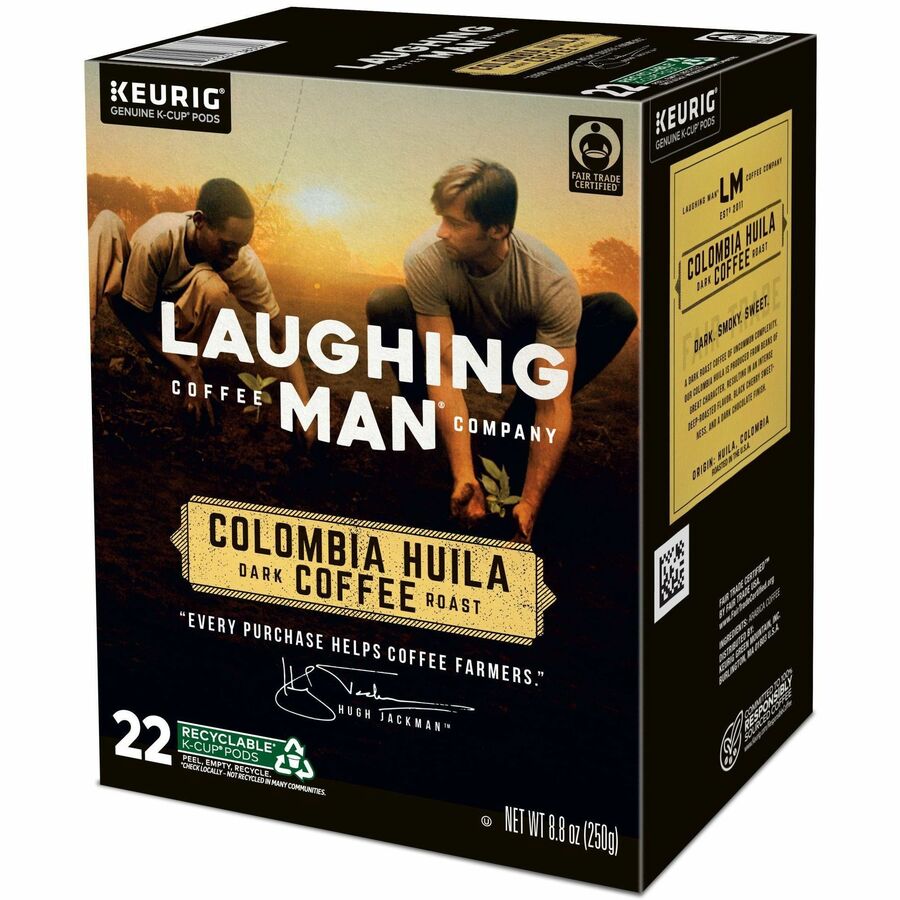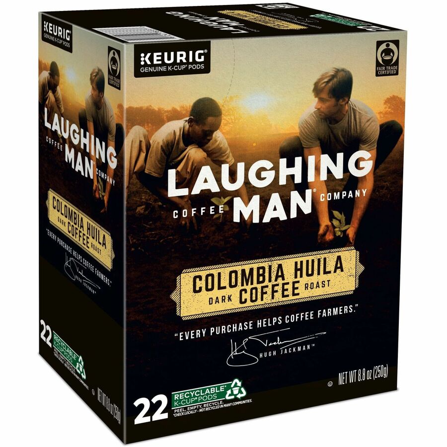LAUGHING MAN K-Cup, Pod Colombia Huila Coffee, Keurig Single Serve K-Cup Pods, Dark Roast, 22 Count - Compatible with Keurig K-Cup Brewer - Dark - K-Cup, Pod - Kosher - 22 / Pack