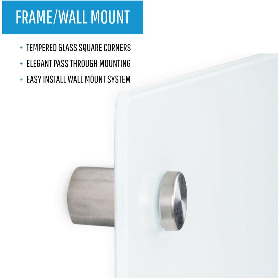 The passthrough mounting system simplifies installation, enabling you to quickly set up the board in a convenient location either vertically or horizontally. The glass surface is compatible with both wet-erase and dry-erase markers, offering flexibility in how you use it.