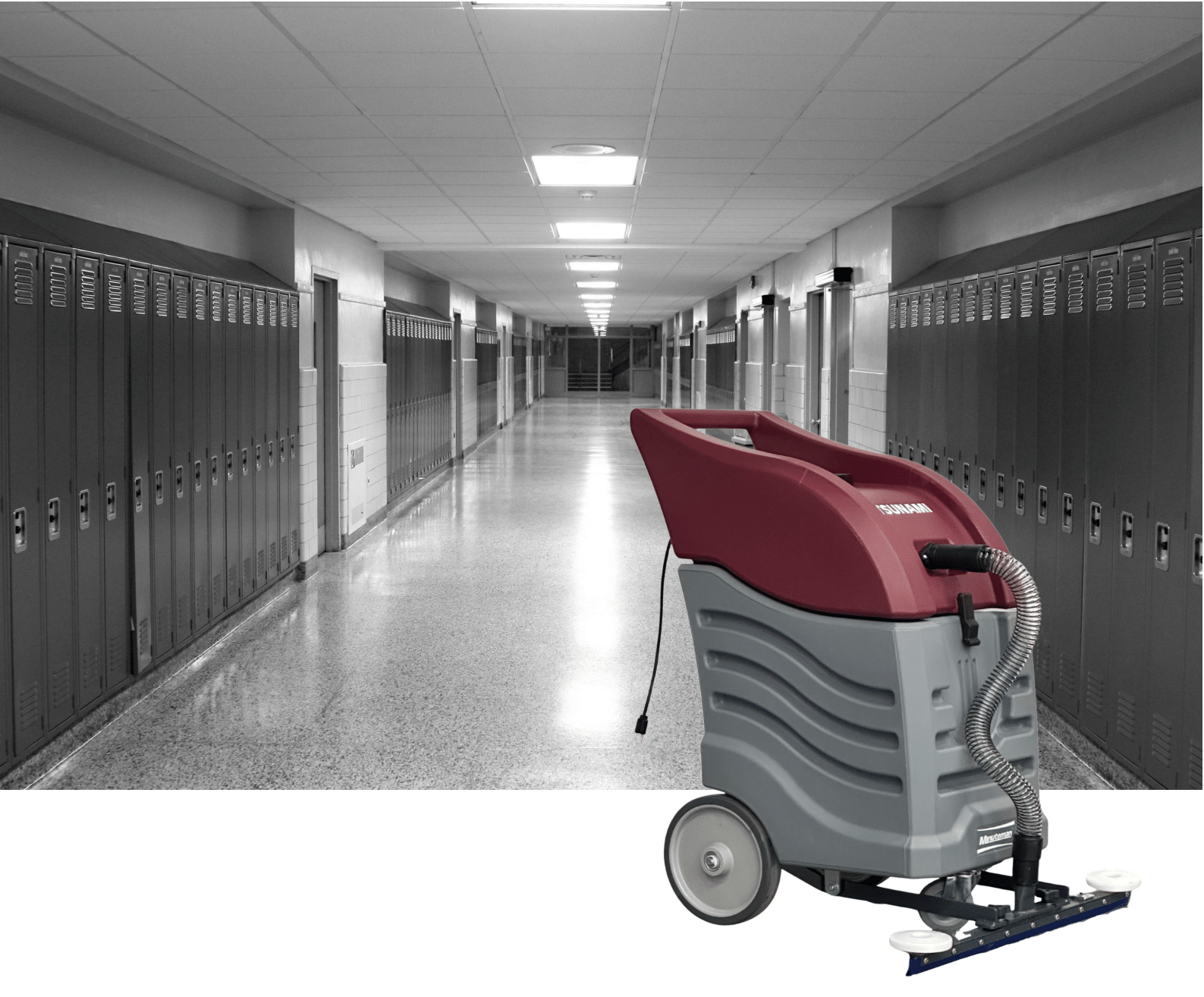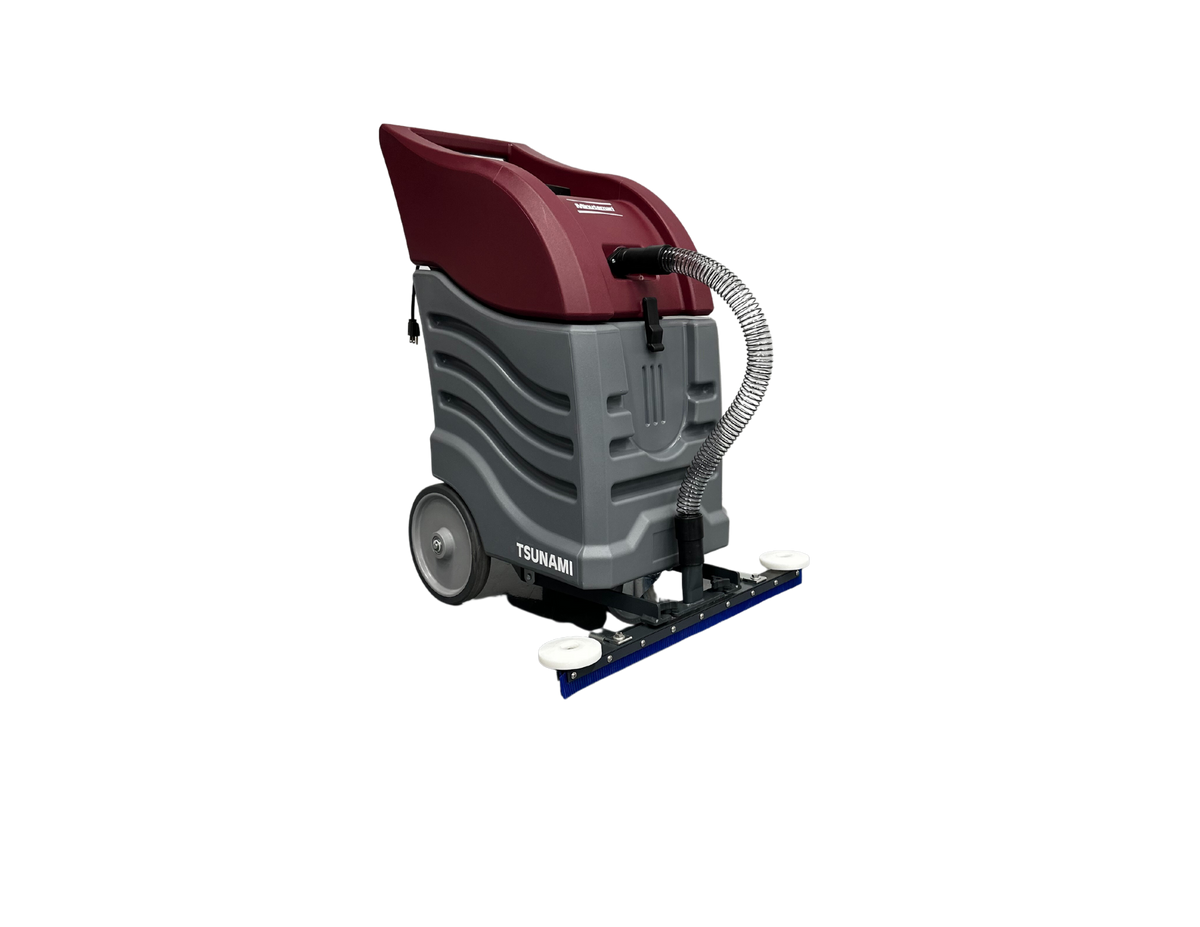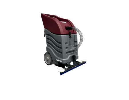 Built for durability and built‑to‑last performance, the Tsunami features a rugged epoxy‑coated 16‑gallon tank and a built‑in float assembly with easy‑lift access. The 24″ primothane front mount squeegee efficiently pulls water into the tank, leaving hard floor surfaces drier and safer after cleaning passes. The vacuum motor’s elevated position protects it from moisture and prolongs its lifespan.