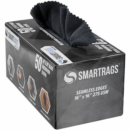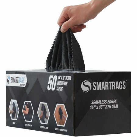 Monarch Smart Rags Microfiber Cloths, 16" x 16", 50 / Box - Heavy Duty, Reusable, Streak-free, Lint-free, Dirt Resistant, Grime Resistant - Black