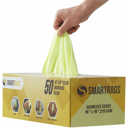 Monarch Smart Rags Microfiber Cloths, 16" x 16", 50 / Box - Reusable, Streak-free, Lint-free, Dirt Resistant, Grime Resistant - Yellow