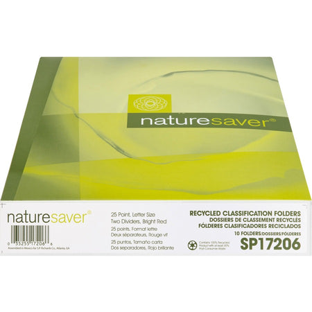 Nature Saver Letter Recycled Classification Folder - 8 1/2" x 11" - 2" for Folder - 2 Divider(s) - 25 pt. - Red - 100% Recycled - 10 / Box