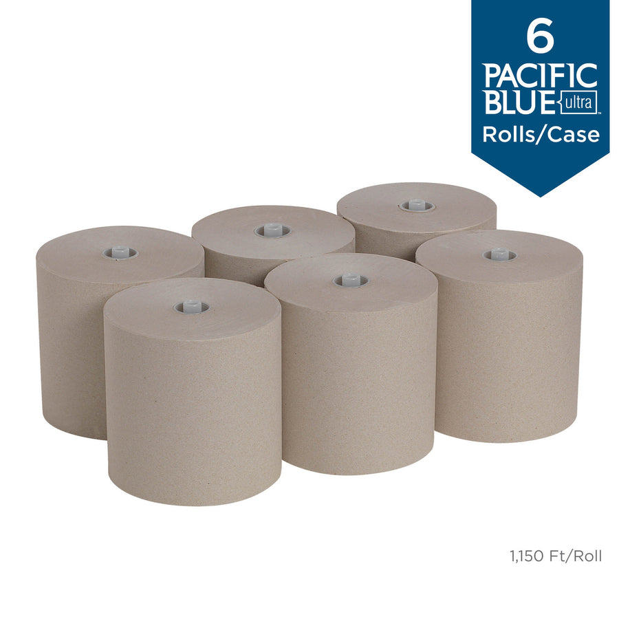 Pacific Blue Ultra High-Capacity Recycled Paper Towel Rolls - 7.87" Width x 1150 ft Length - Brown - Paper - 6 Rolls Per Container - 6 / Carton