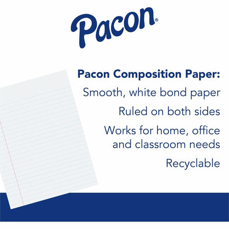 Pacon Composition Paper - Government - Letter - 500 Sheets - Ruled Red Margin - 16 lb Basis Weight - Government-Letter - 8 1/2" x 11" Sheet Size - White Paper - 500 / Ream