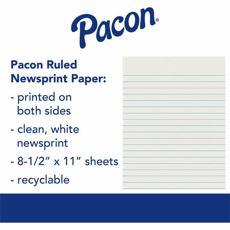Pacon Ruled Newsprint Practice Paper - Letter - 500 Sheets - 0.37" Ruled - Letter - 8 1/2" x 11" Sheet Size - White Paper - 500 / Ream