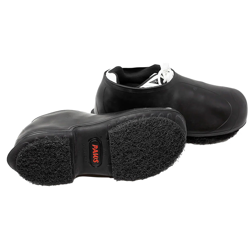 PAWS Rubber Stripping Overshoes give full shoe coverage with super-stripper pads permanently attached to provide excellent traction. These low-profile heavy-duty rubber overshoes will keep your shoes dry and protect them from spills. Thoroughly rinse after each use.