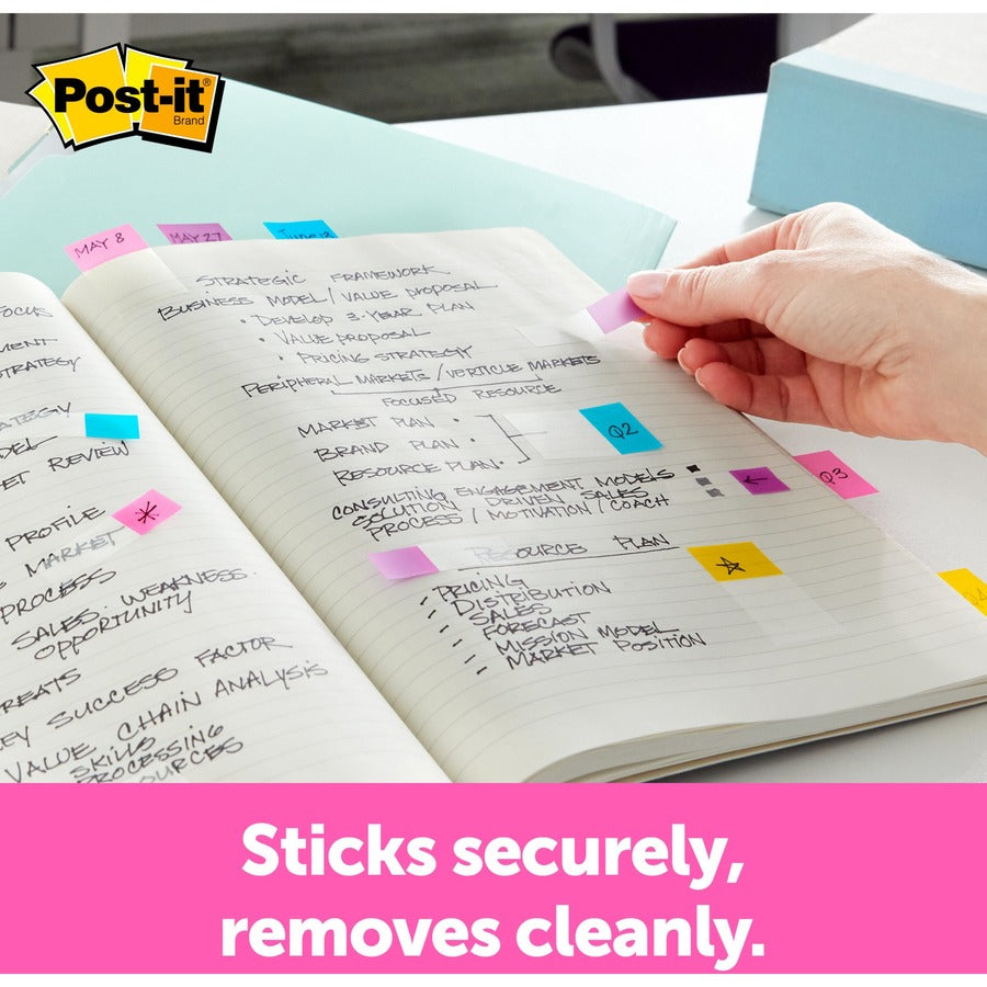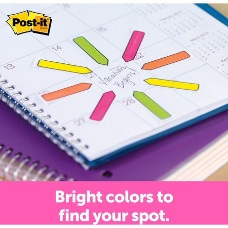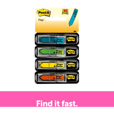 Post-it® Arrow Message Flags - 80 - 1/2" Flag/Note Width x 1 3/4" Flag/Note Length - Arrow, Rectangle - Unruled - Sign & Date - Blue, Red, Green, Yellow, Assorted - Self-adhesive, Repositionable, Removable - Dispenser Included - 80 / Pack