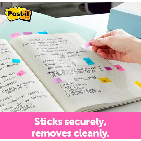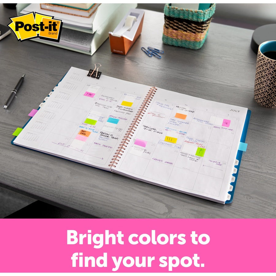 Post-it® Assorted Flag Combo Pack - 320 x Assorted - 1/2" Flag/Note Width, 1" Flag/Note Width - Blue, Green, Yellow, Orange, Red, Pink, Purple - Self-adhesive, Repositionable - Dispenser Included - 320 / Pack