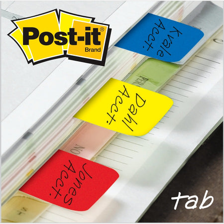 Post-it® Durable Tabs - Write-on Tab(s) - 0.98" Tab Height x 1" Tab Width - Self-adhesive, Removable - Red, Yellow, Blue, Neon Tab(s) - Wear Resistant, Tear Resistant, Durable, Writable, Repositionable, Reusable, Removable - 66 / Pack