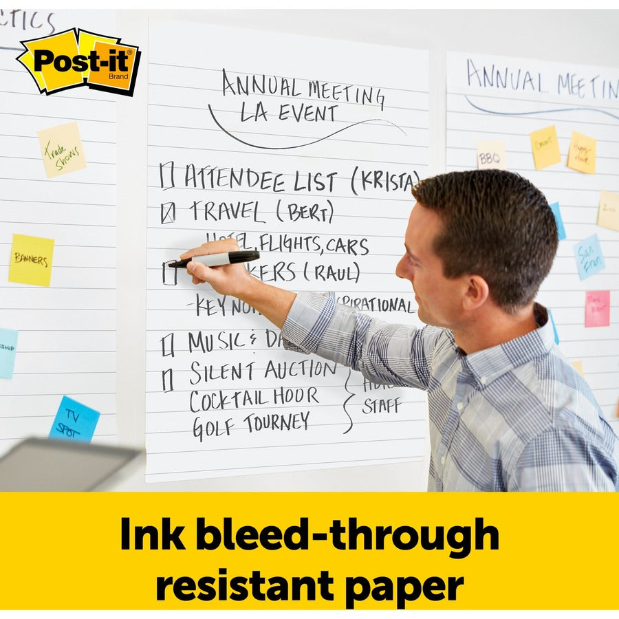 Post-it® Easel Pad - 30 Sheets - Ruled Front Ruling x 25" Width x 30" Length - Self-stick, Resist Bleed-through, Handle, Sturdy Backcard, Universal Slot, Repositionable, Adhesive Backing - 6 / Carton