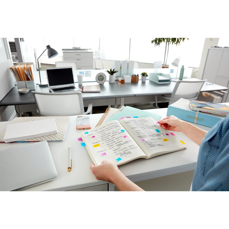 Post-it® Flags - 100 x Bright Blue - 1" Flag/Note Width x 1 3/4" Flag/Note Length - Rectangle - Blue - Removable, Self-adhesive - Dispenser Included - 100 / Pack