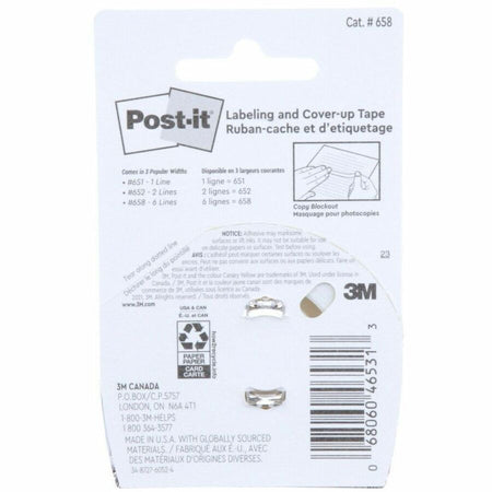 Post-it® Labeling & Cover-up Tape - 1" Tape Width x 58.33 ft Tape Length - 6 Line(s) - White Tape - Removable - Yellow - 1 Roll