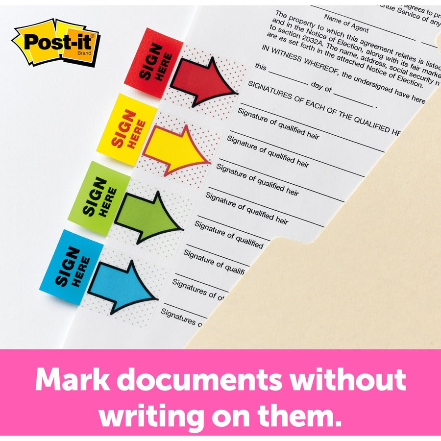 Post-it® Message Flag Value Pack - 248 - 1" Flag/Note Width x 1 3/4" Flag/Note Length - Arrow, Rectangle - Unruled - SIGN HERE - Red, Blue, Yellow, Green, Red - Removable, Self-adhesive - Dispenser Included - 248 / Pack