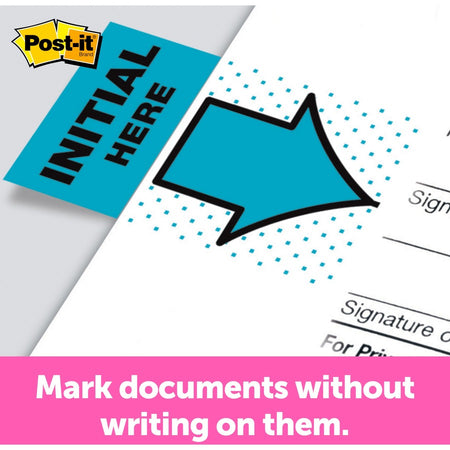 Post-it® Message Flags - 100 - 1" Flag/Note Width x 1 3/4" Flag/Note Length - Arrow, Rectangle - Unruled - Initial Here - Blue - Removable, Self-adhesive - Dispenser Included - 100 / Pack