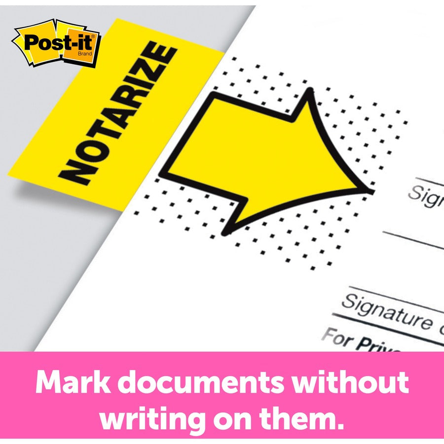 Post-it® Message Flags - 100 - 1" Flag/Note Width x 1 3/4" Flag/Note Length - Arrow, Rectangle - Unruled - Notarize - Yellow - Removable, Self-adhesive - Dispenser Included - 100 / Pack