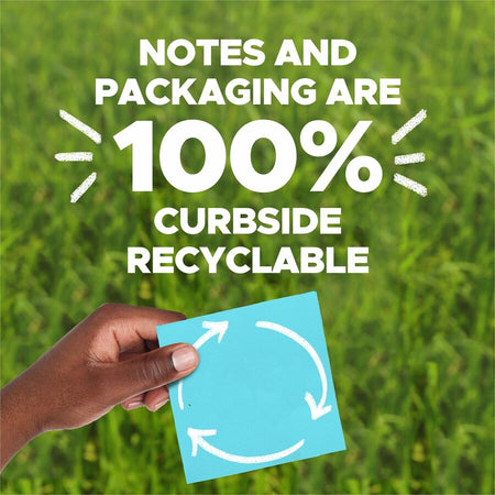 Post-it® Recycled Super Sticky Notes - 70 - 3" Flag/Note Width x 3" Flag/Note Length - Square - 70 Sheets per Pad - Unruled - Assorted Oasis - Paper - Adhesive - Recycled - 24 / Pack