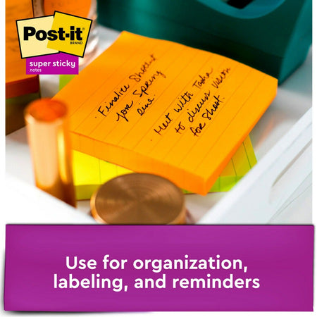 Post-it® Super Sticky Lined Notes - Energy Boost Color Collection - 540 - 4" Flag/Note Width x 4" Flag/Note Length - Square - 90 Sheets per Pad - Ruled - Vital Orange, Tropical Pink, Blue Paradise, Limeade, Sunnyside - Paper - Self-adhesive - 6 / Pack