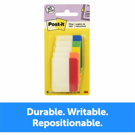 Post-it® Tabs - Write-on Tab(s) - 2" Tab Width - Red, Orange, Yellow, Green, Blue Tab(s) - Removable, Durable, Repositionable, Customizable, Writable, Wear Resistant, Tear Resistant - 30 / Pack