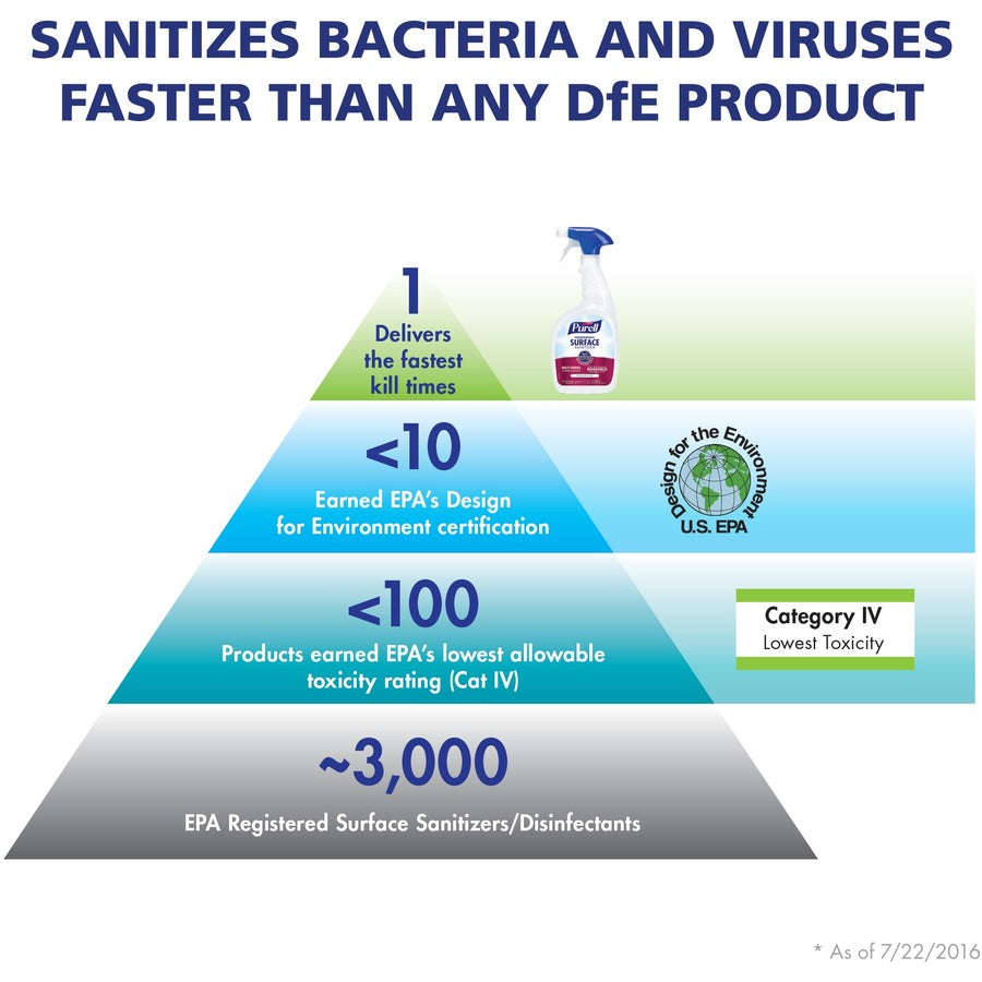 PURELL® Foodservice Surface Sanitizer - 32 fl oz (1 quart) - Rinse-free, Fragrance-free - Clear Spray Bottle - 6 / Carton