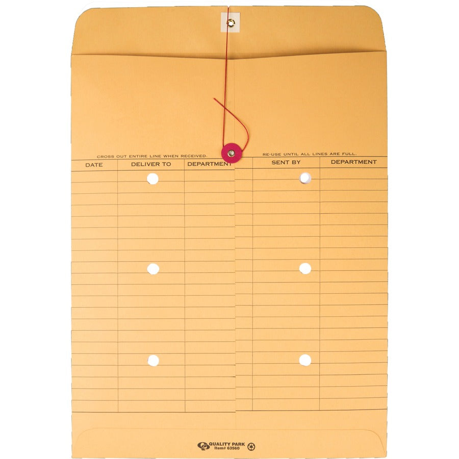 Quality Park 10 x 13 Inter-Departmental Envelopes - Inter-department - 10" Width x 13" Length - 28 lb - String/Button - Brown Kraft - Kraft - 100 / Box