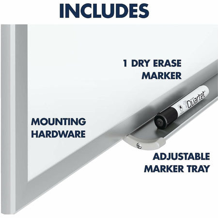 The silver finish aluminum frame not only adds style but also provides durability. The attached marker tray offers convenient storage for accessories, keeping your workspace clutter-free. This board comes complete with one dry-erase marker featuring a chisel tip and all necessary hardware for wall-mounting.