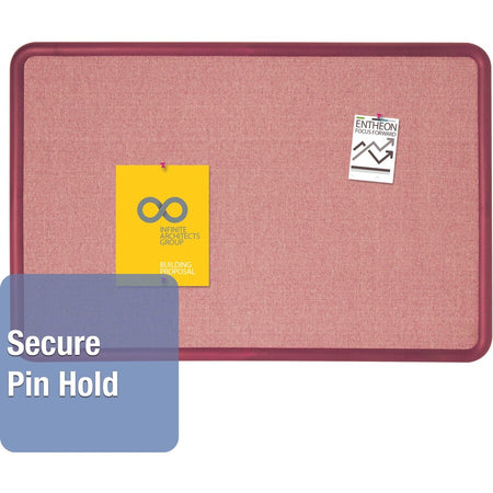 Enhance your workspace with our premium bulletin board featuring a colored, self-healing fabric surface elegantly framed in matching color plastic. Easily mount the board vertically or horizontally using the user-friendly mounting system. The high-density fiberboard backing ensures secure document display with pushpins, while the self-healing surface maintains a pristine appearance by eliminating unsightly pinholes. Unlike traditional corkboards, our bulletin board is designed to withstand years of use without fading or crumbling. Elevate your office organization with this durable and stylish bulletin board.