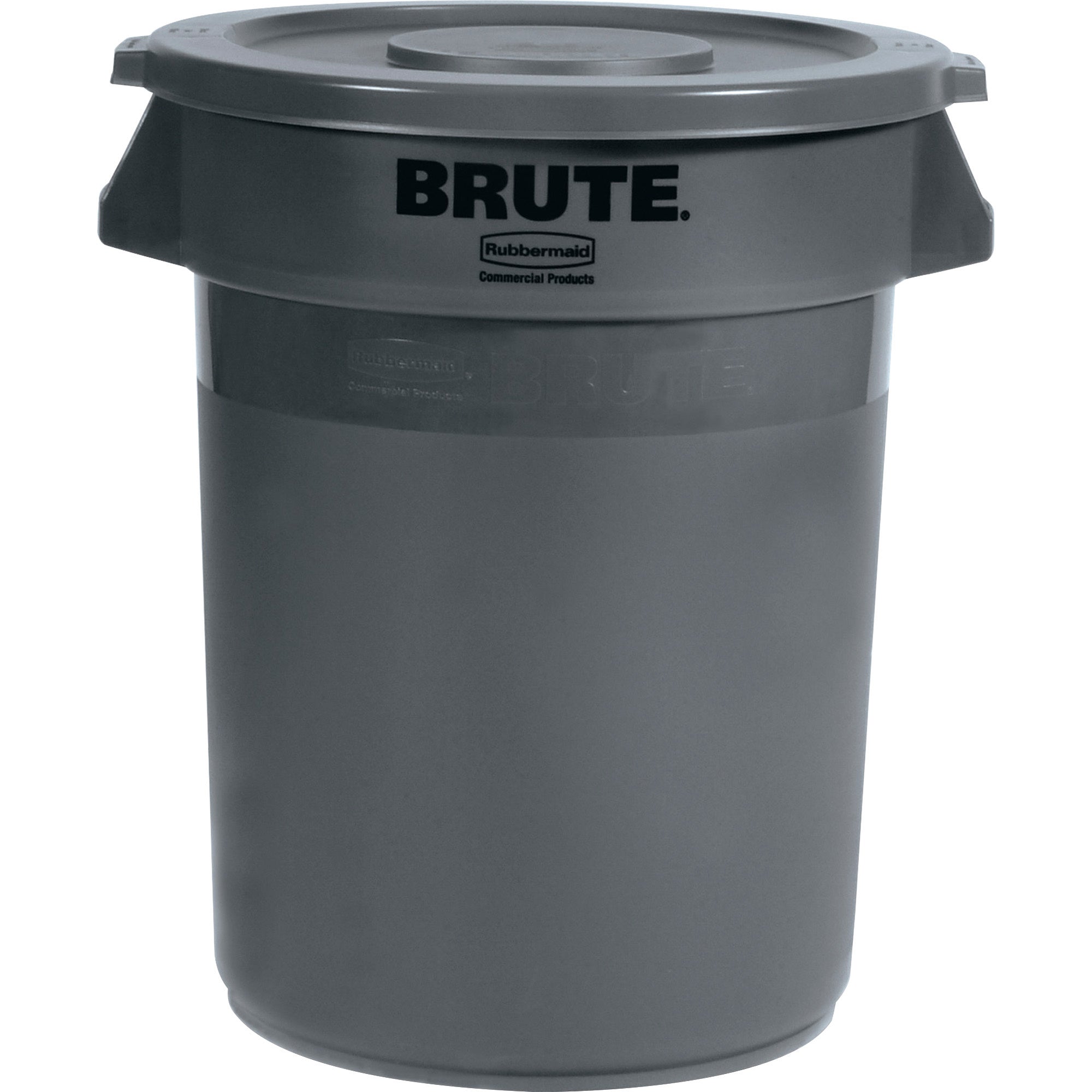 Rubbermaid Commercial Brute 32-Gallon Container Flat Lid - Round - Plastic - 1 Each - Gray