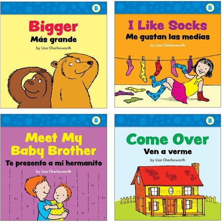 Enhance the reading experience for English Language Learners with these engaging bilingual books. Designed to align with Guided Reading Level B, each book offers simple, repetitive stories with high-frequency words and captivating illustrations on popular topics. This set includes 100 books across 20 titles, making it an ideal resource for classrooms. Each book features eight pages and comes with a 32-page teaching guide and a convenient storage unit. Whether used as a tool for early learners or as an introduction to a new language, these books provide valuable support for students developing their reading skills.