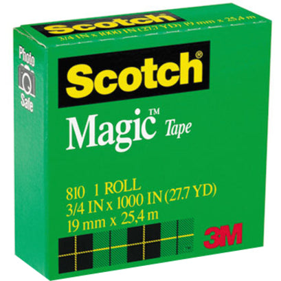 Scotch 3/4"W Magic Tape - 27.78 yd Length x 0.75" Width - 1" Core - Matte - Clear - Tear Resistant, Split Resistant - For Mending, Splicing - 1 Roll
