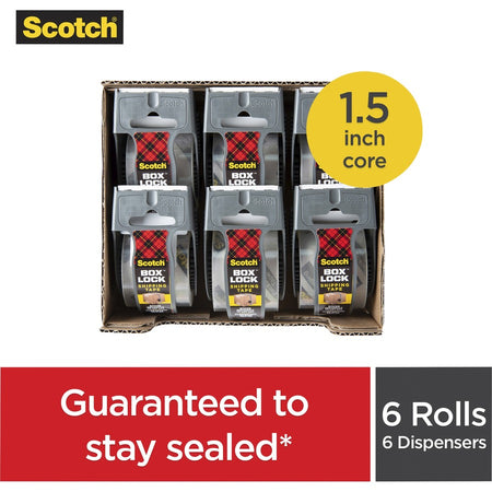 Scotch Box Lock Dispenser Tape - Clear, 22.20 yd x 1.88" - 6 Pack