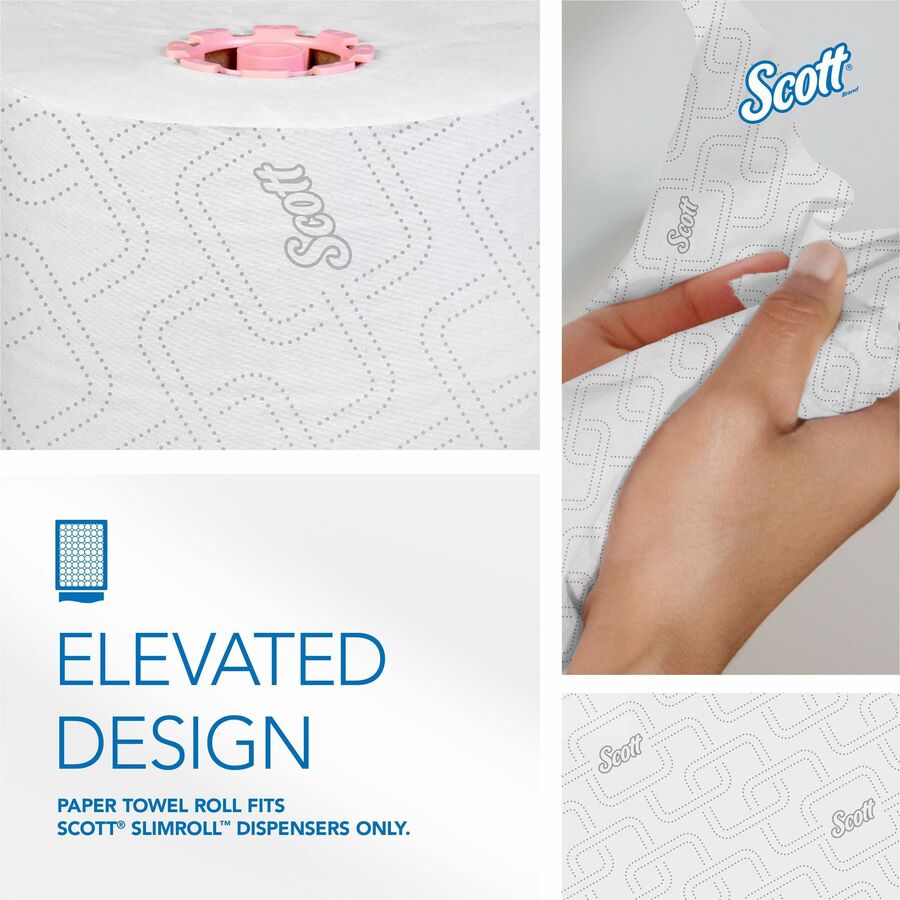 Scott Pro Slimroll Hard Roll Towels - 8" Width x 580 ft Length - White, Pink - Paper - 6 / Carton