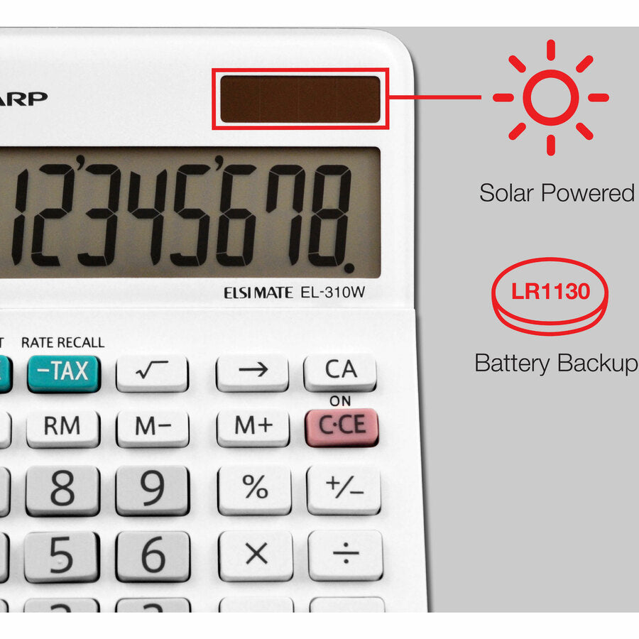Sharp Calculators EL-310WB 8-Digit Professional Mini-Desktop Calculator - 4-Key Memory, Sign Change, Backspace Key, Auto Power Off, Double Zero - 8 Digits - LCD - 1" Height x 3.4" Width x 4.8" Depth - White - Desktop - 1 Each