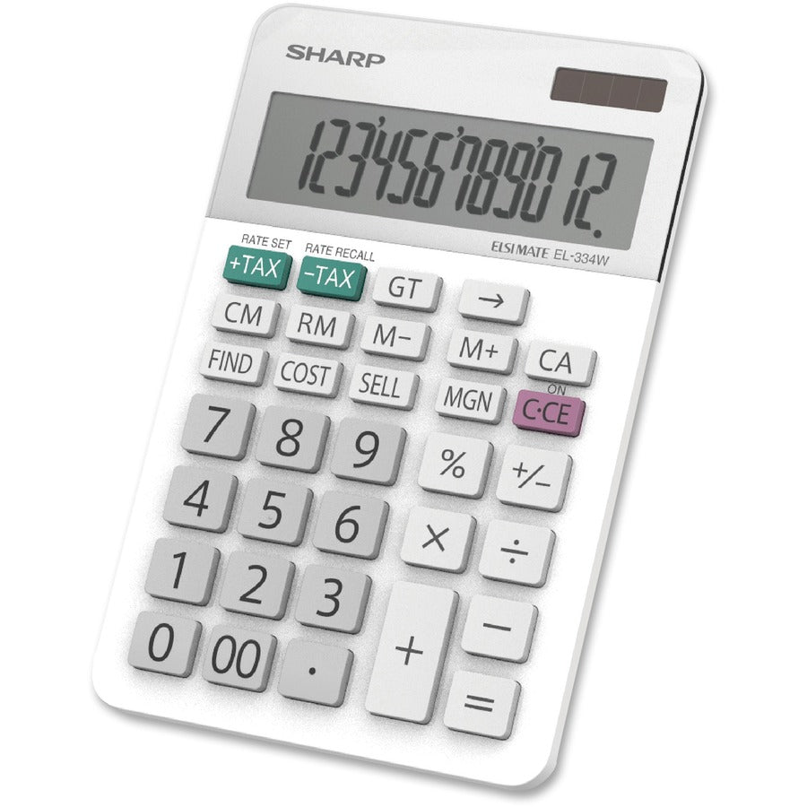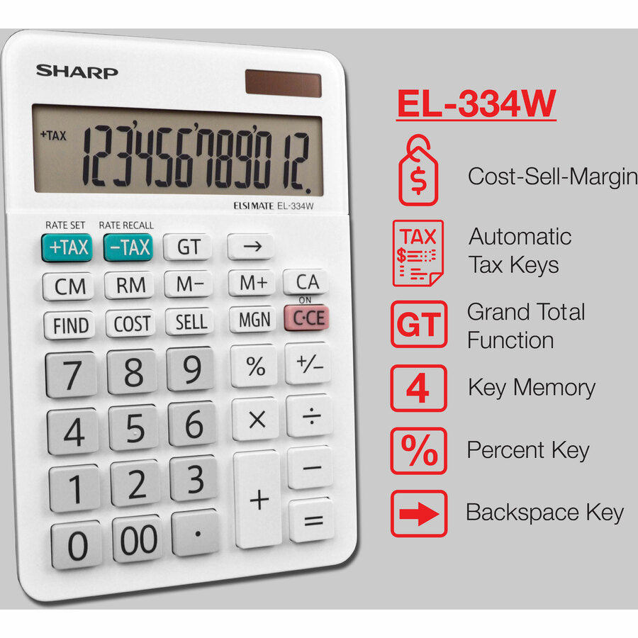 Sharp Calculators EL-334WB 12-Digit Professional Large Desktop Calculator - 4-Key Memory, Sign Change, Backspace Key, Auto Power Off, Double Zero - 12 Digits - LCD - 0.6" Height x 4.4" Width x 6.6" Depth - White - Desktop - 1 Each