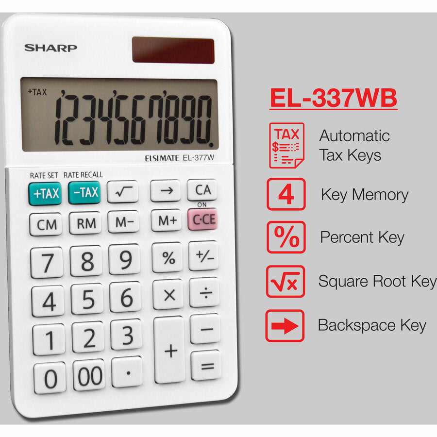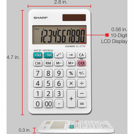 Sharp Calculators EL-377WB 10-Digit Professional Handheld Calculator - Sign Change, Auto Power Off - 10 Digits - LCD - 0.3" Height x 2.8" Width x 4.8" Depth - White - Handheld - 1 Each