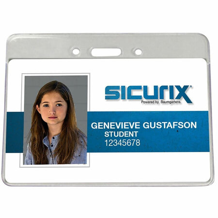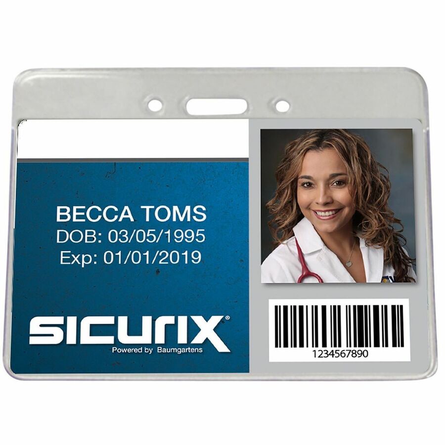 SICURIX Badge Holder - Support 3.50" x 2.37" Media - Horizontal - Vinyl - Clear - 50 / Pack