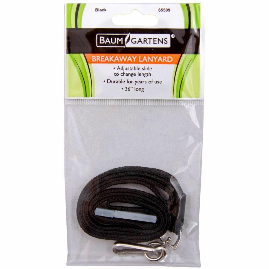 SICURIX Hook Fastener Breakaway Lanyard - J-Hook Attachment - 0.3" Width x 36" Length - Black - 1 Each