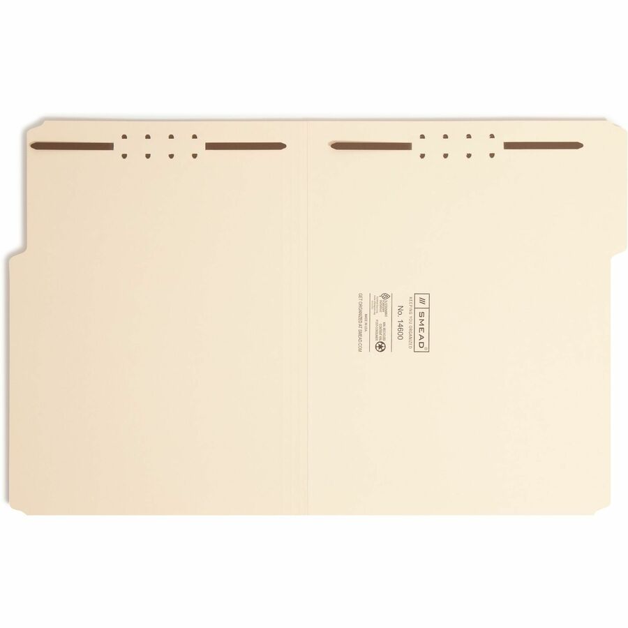 Smead 1/3 Tab Cut Letter Recycled Fastener Folder - 8 1/2" x 11" - 2 x 2K Fastener(s) - Top Tab Location - Assorted Tab Position - 18 pt. - 1 Plys - Manila - 10% Paper Recycled - 50 / Box