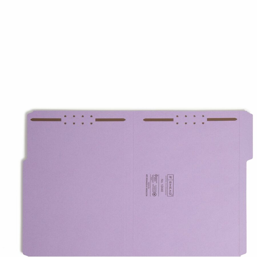 Smead 1/3 Tab Cut Letter Recycled Fastener Folder - 8 1/2" x 11" - 3/4" Expansion - 2 x 2K Fastener(s) - 2" Fastener Capacity - Top Tab Location - Assorted Tab Position - 11 pt. - 2 Plys - Lavender - 10% Recycled - 50 / Box