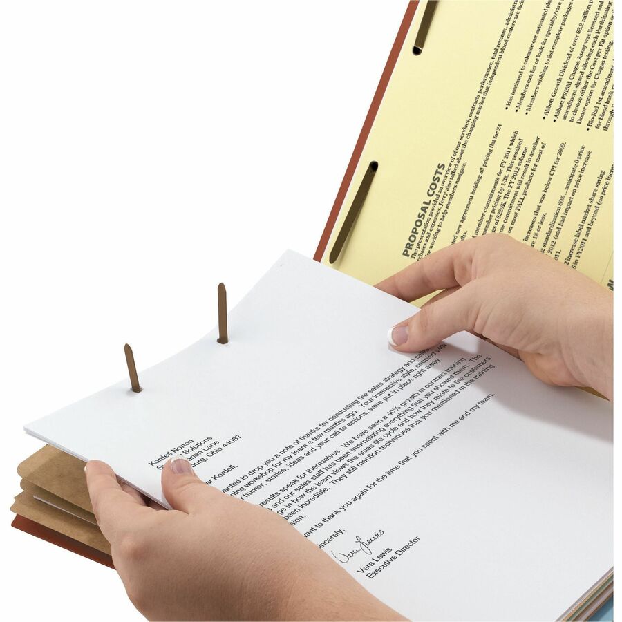 Smead 2/5 Tab Cut Legal Recycled Classification Folder - 8 1/2" x 14" - 3" Expansion - 2 x 2K Fastener(s) - Top Tab Location - Right of Center Tab Position - 3 Divider(s) - 25 pt. - Pressboard - Red - Eco-friendly, Durable - 100% Recycled - 10 / Box