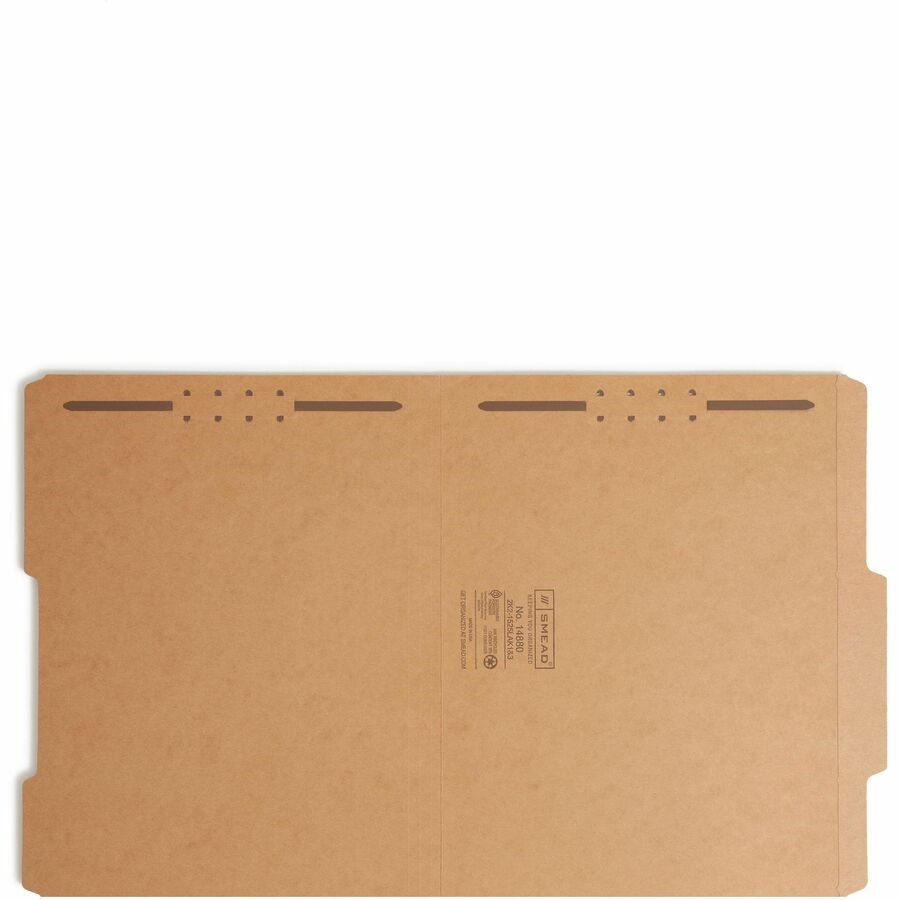 Smead 2/5 Tab Cut Letter Recycled Fastener Folder - 8 1/2" x 11" - 3/4" Expansion - 2 x 2K Fastener(s) - 2" for Folder - Top Tab Location - Right of Center Tab Position - 11 pt. - 2 Plys - Kraft - Reinforced Tab - 10% Recycled - 50 / Box