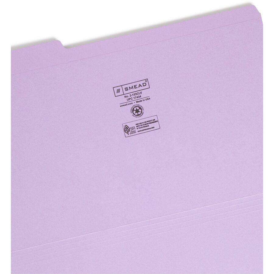Smead Colored 1/3 Tab Cut Legal Recycled Top Tab File Folder - 8 1/2" x 14" - 3/4" Expansion - Top Tab Location - Assorted Tab Position - 11 pt. - 2 Plys - Lavender - 10% Recycled - 100 / Box