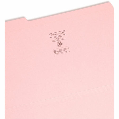 Smead Colored 1/3 Tab Cut Legal Recycled Top Tab File Folder - 8 1/2" x 14" - 3/4" Expansion - Top Tab Location - Assorted Tab Position - 11 pt. - 2 Plys - Pink - 10% Recycled - 100 / Box