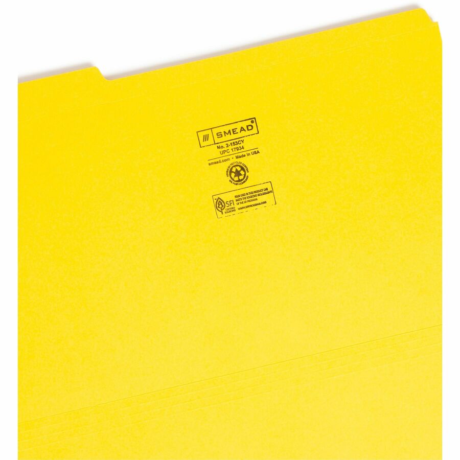 Smead Colored 1/3 Tab Cut Legal Recycled Top Tab File Folder - 8 1/2" x 14" - 3/4" Expansion - Top Tab Location - Assorted Tab Position - 11 pt. - 2 Plys - Yellow - 10% Recycled - 100 / Box