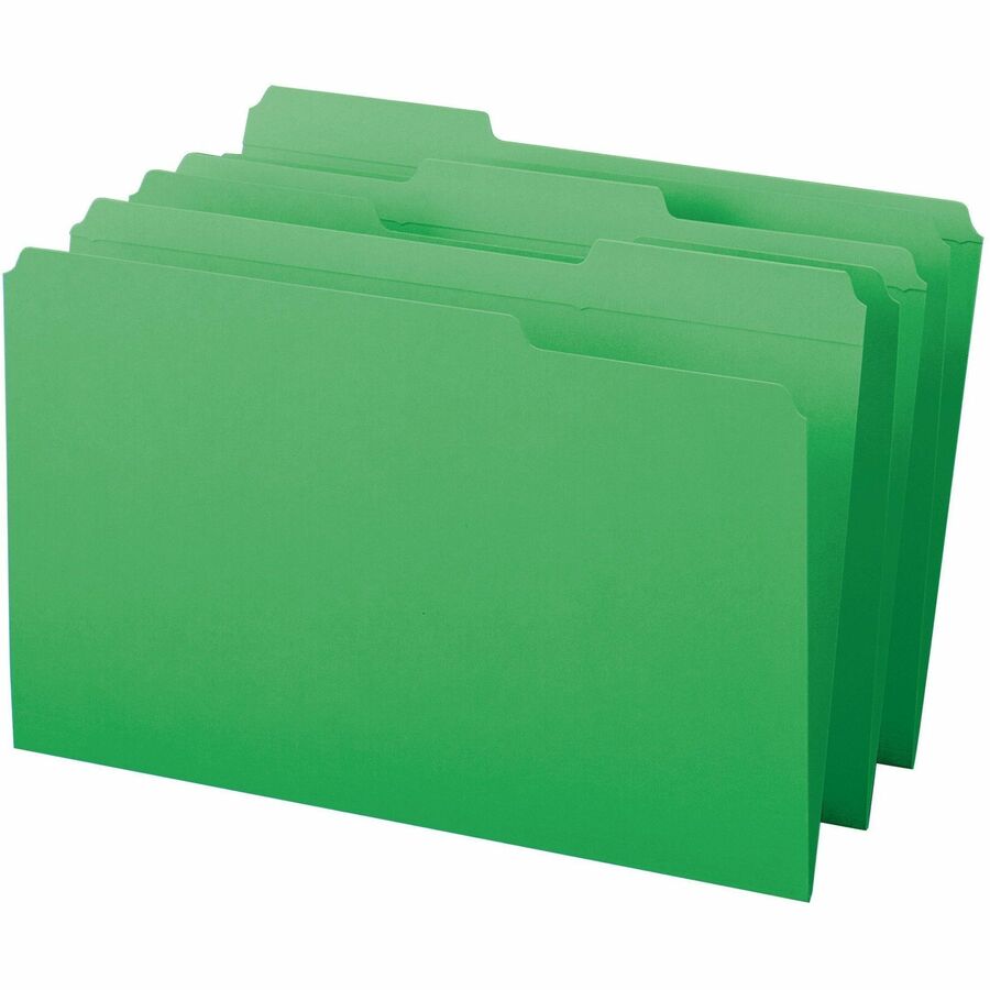 Smead Colored 1/3 Tab Cut Legal Recycled Top Tab File Folder - 8 1/2" x 14" - Top Tab Location - Assorted Tab Position - 11 pt. - 2 Plys - Green - 10% Recycled - 100 / Box