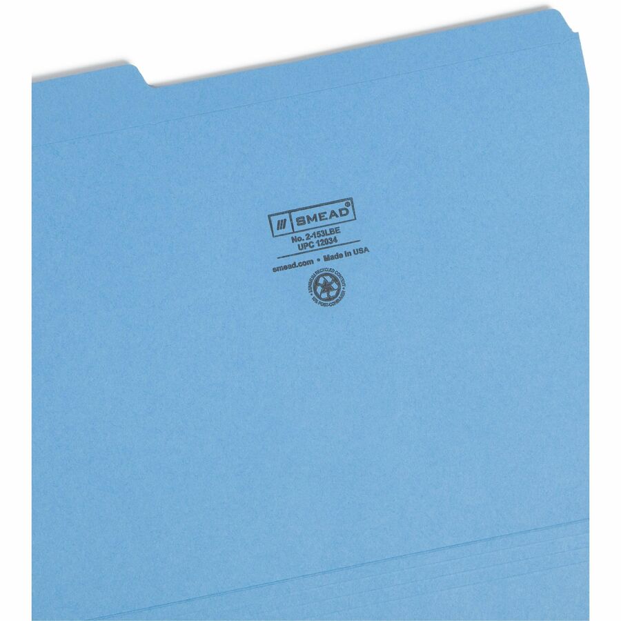 Smead Colored 1/3 Tab Cut Letter Recycled Top Tab File Folder - 8 1/2" x 11" - 3/4" Expansion - Top Tab Location - Assorted Tab Position - 11 pt. - 2 Plys - Blue - 10% Recycled - 100 / Box