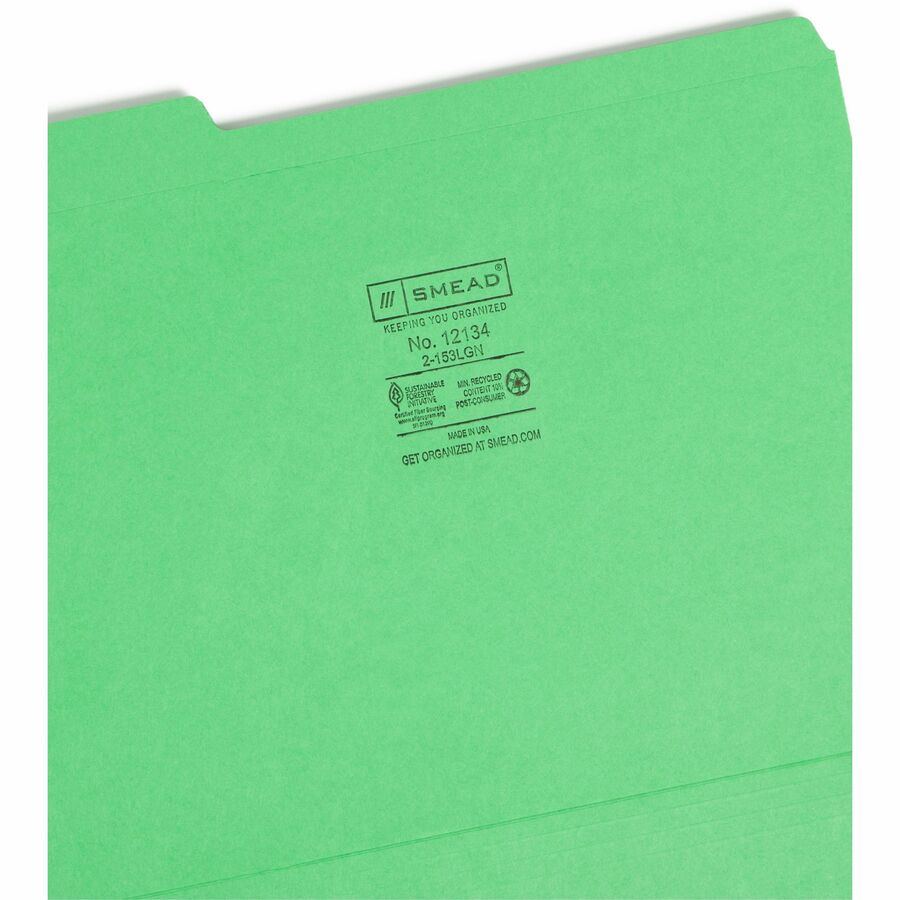 Smead Colored 1/3 Tab Cut Letter Recycled Top Tab File Folder - 8 1/2" x 11" - 3/4" Expansion - Top Tab Location - Assorted Tab Position - 11 pt. - 2 Plys - Green - 10% Recycled - 100 / Box
