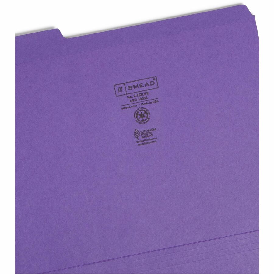 Smead Colored 1/3 Tab Cut Letter Recycled Top Tab File Folder - 8 1/2" x 11" - 3/4" Expansion - Top Tab Location - Assorted Tab Position - 11 pt. - 2 Plys - Purple - 10% Recycled - 100 / Box