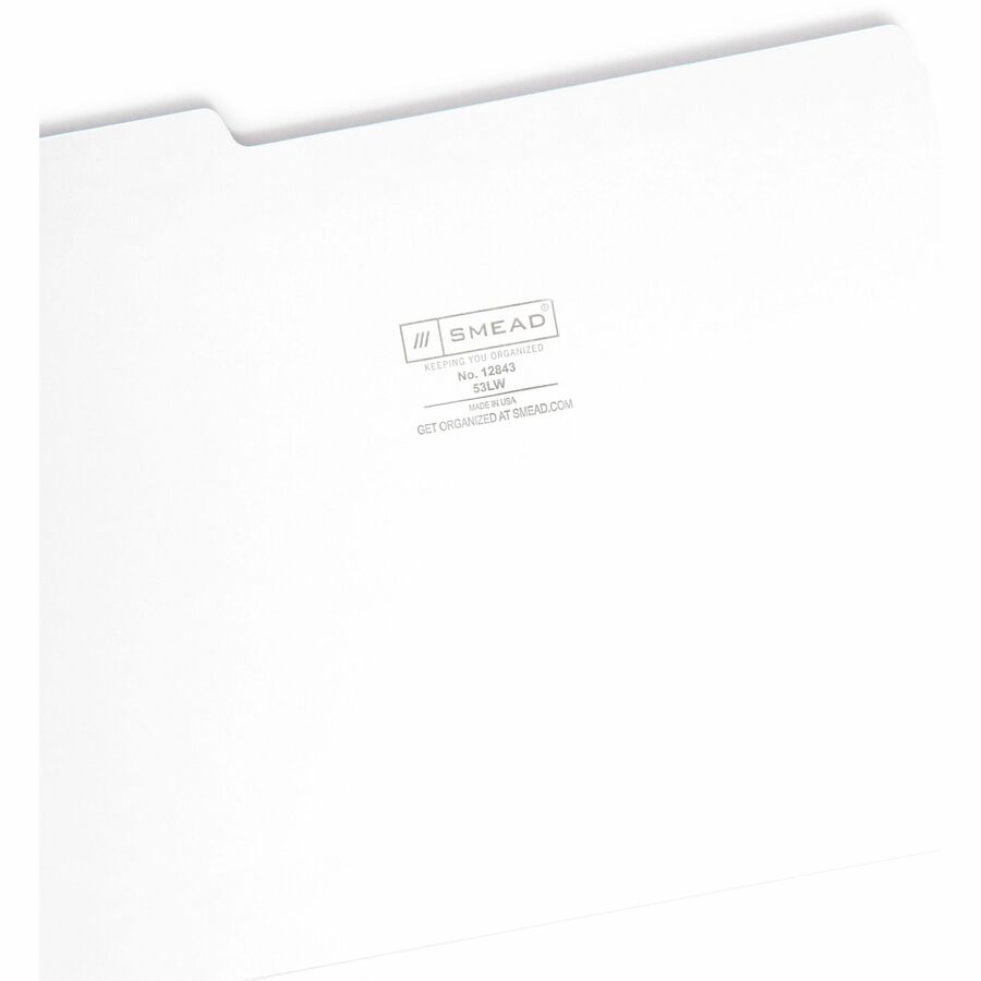 Smead Colored 1/3 Tab Cut Letter Recycled Top Tab File Folder - 8 1/2" x 11" - Top Tab Location - Assorted Tab Position - 11 pt. - 1 Plys - White - 10% Recycled - 100 / Box